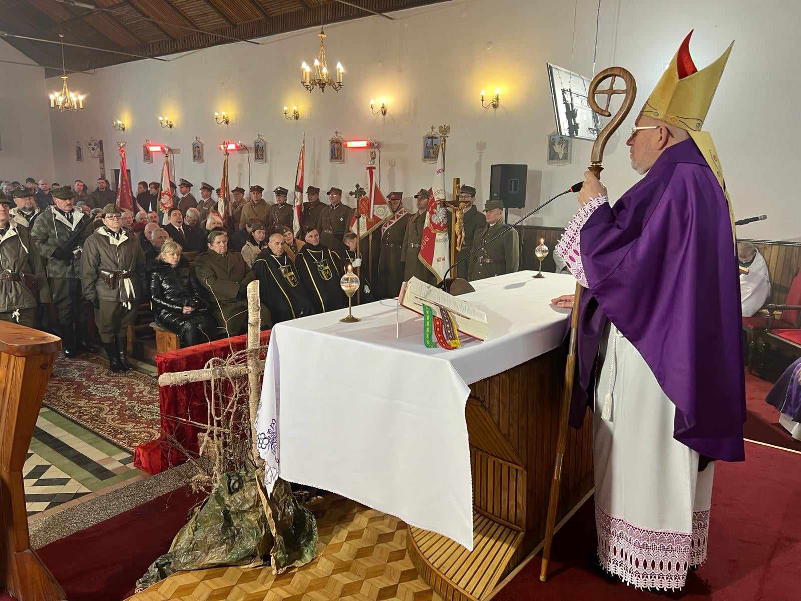 Fot. ks. Marek GutowskiW niedzielę 18 lutego 2024 r., w Orłowie uczczono 78. rocznicę Bitwy pod Gajrowskimi. Centralnym punktem wydarzenia była uroczysta Msza św., której przewodniczył bp Jerzy Mazur, biskup ełcki. Licznie zgromadzeni uczestnicy modlili się w intencji pokoju oraz o zachowanie pamięci o Żołnierzach Wyklętych, których jedyną winą było to, że kochali Ojczyznę inną od tej, którą po II wojnie światowej rzeźbili komuniści radzieccy i polscy.