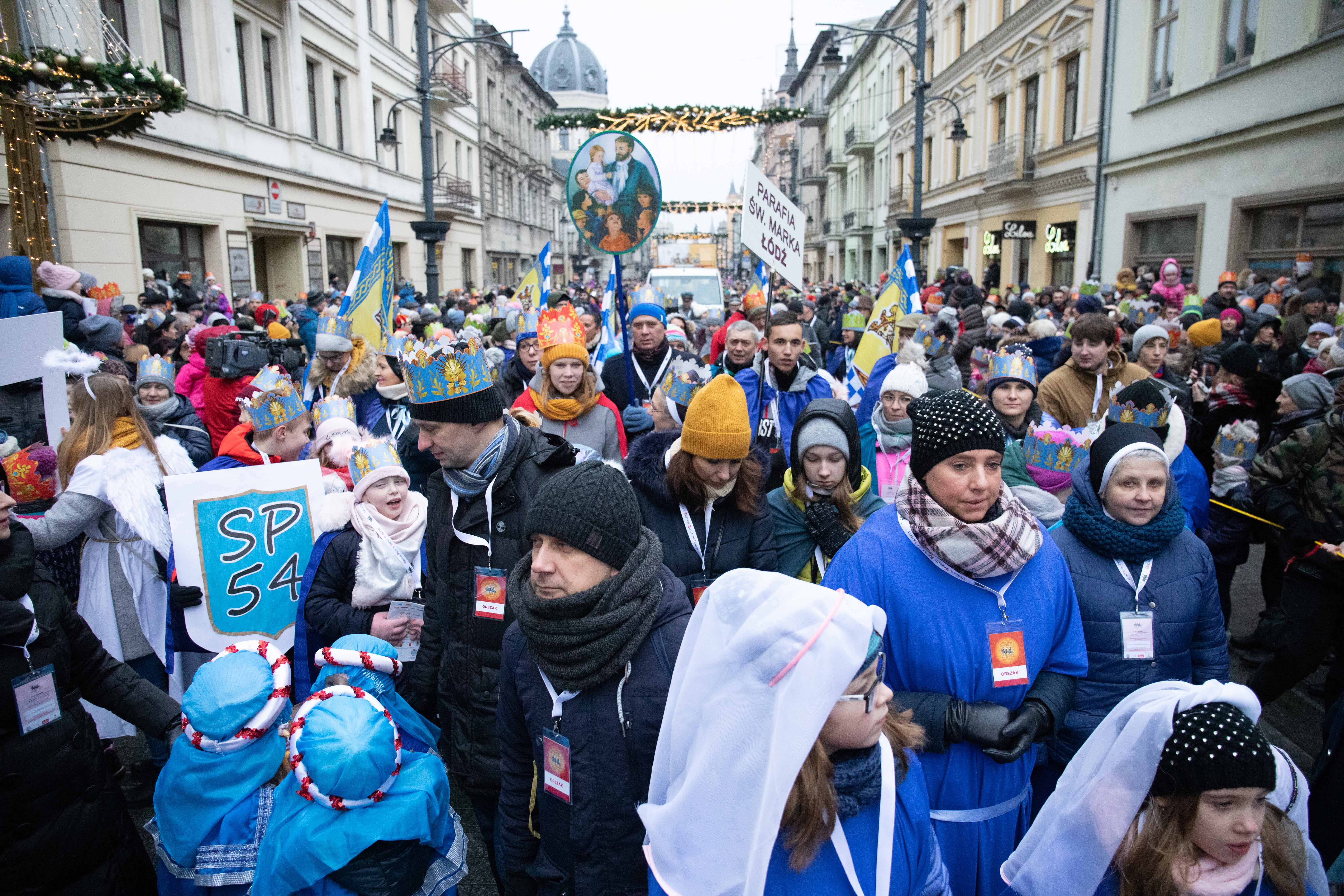 Po zakończeniu liturgii łódzki Orszak Trzech Króli przeszedł ulicą Piotrkowską z Placu Wolności do katedry p.w. św. Stanisława Kostki. Za gwiazdą podążały całe rodziny z dziećmi, a na ich głowach połyskiwały kolorowe korony, przygotowane przez organizatorów tegorocznego Orszaku.
