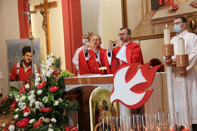 Wskazał, że w życiu trzeba też zmagać się z trudnymi chwilami. – Życie bł. Carla było także mocno naznaczone cierpieniem, chorobą, zmaganiem. W życiu jest wiele trudnych chwil. Duch Święty przychodzi, aby pomóc wam, byście uczyli się podejmować trudne chwile, żebyście potrafili się z nimi zmierzyć i byście w trudnych chwilach umieli mocno trzymać się Pana Jezusa – mówił bp Bryl.
