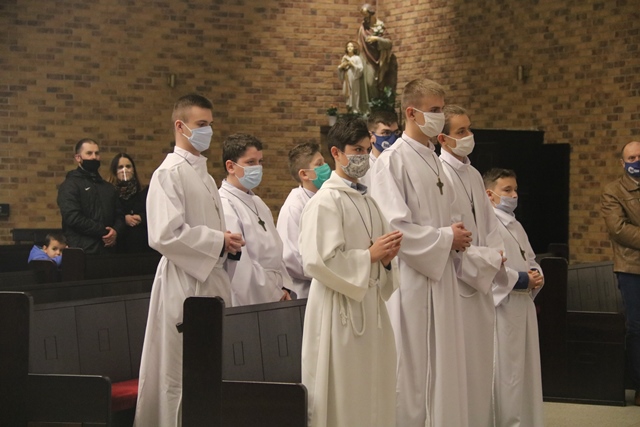 Fot. Ewa Kotowska-Rasiak/KAIBp Łukasz Buzun ustanowił 16 ministrantów z diecezji kaliskiej lektorami. Obrzęd błogosławieństwa odbył się podczas Mszy św. w Sanktuarium Miłosierdzia Bożego w Ostrowie Wielkopolskim.