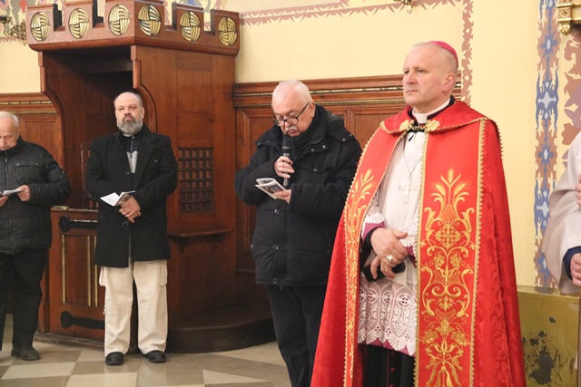 Fot. Rafał RasiakPo raz jedenasty ostrowskie środowisko twórców odprawiło, w Niedzielę Palmową, drogę krzyżową pod hasłem „Drogą wspólnoty”. Artyści odczytali rozważania, które sami przygotowali. Nabożeństwu przewodniczył bp Łukasz Buzun.