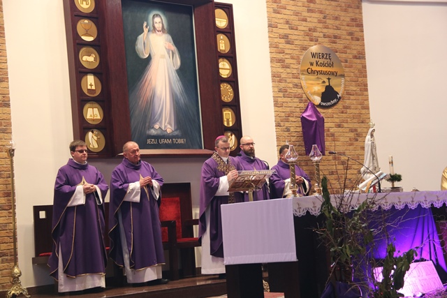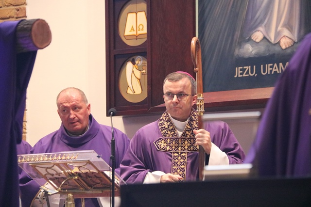 Wraz z biskupem kaliskim Mszę św. koncelebrowali: ks. prał. Andrzej Szudra, kustosz Sanktuarium Miłosierdzia Bożego w Ostrowie Wielkopolskim, ks. kan. Piotr Kowalek, dyrektor Caritas Diecezji Kaliskiej, ks. Łukasz Skoracki, zastępca dyrektora Caritas Diecezji Kaliskiej i ks. Jakub Grzybowski, wikariusz parafii św. Jana Chrzciciela w Krotoszynie.