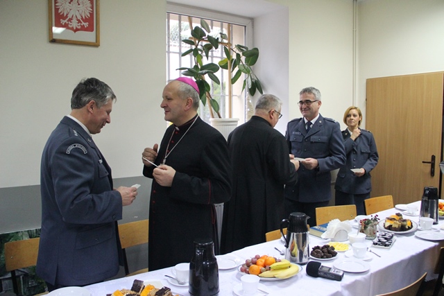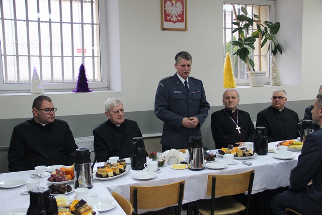 Wizytę w areszcie śledczym rozpoczęło spotkanie z pracownikami. Gości powitał dyrektor kpt. Waldemar Zaremba. Po odczytaniu Ewangelii o Bożym Narodzeniu słowo do pracowników aresztu skierował bp Łukasz Buzun, który przypomniał, że 6 stycznia kończy się obchodzony w diecezji kaliskiej Nadzwyczajny Rok Świętego Józefa Kaliskiego.
