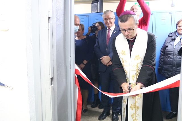 Fot. Ewa Kotowska-Rasiak/KAI– Potrzebujemy ludzi wykształconych w naszej ojczyźnie, ale potrzebujemy także ludzi wrażliwych, gotowych do niesienia pomocy innym – mówił bp Damian Bryl, który przewodniczył Mszy św. w kościele pw. Chrystusa Króla z okazji obchodów 100-lecia I LO w Ostrzeszowie. Biskup kaliski poświęcił Izbę Pamięci z celą św. o. Maksymiliana Kolbe, który od 9 listopada do 8 grudnia 1939 r. wraz z 33 braćmi zakonnymi z Niepokalanowa przebywał w obozie jenieckim znajdującym się w budynku szkoły.
