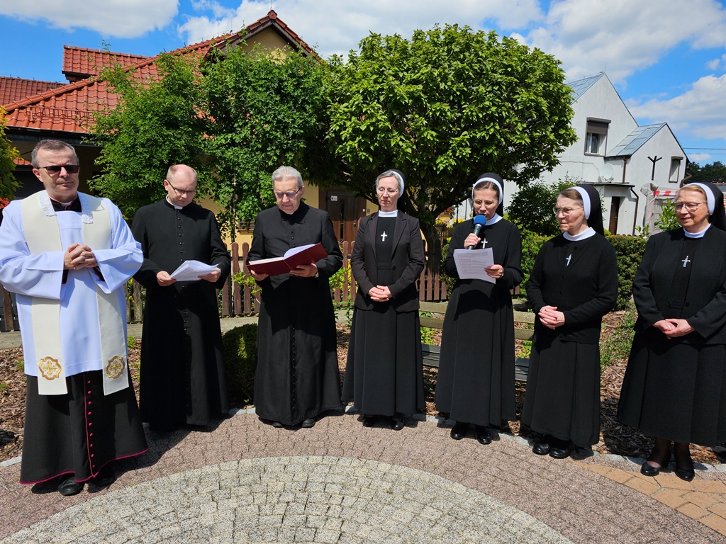 Dziękowała osobom, które przyczyniły się do powstania ławeczki i upiększenia ogrodu. Wskazała, że autorką figury jest Aneta Bartosiuk-Szarlej. Słowa wdzięczności skierowała do s. Bożeny za nadzór nad projektem i dopilnowanie każdego szczegółu oraz s. Natanaeli, która z oddaniem współtworzyła to miejsce.