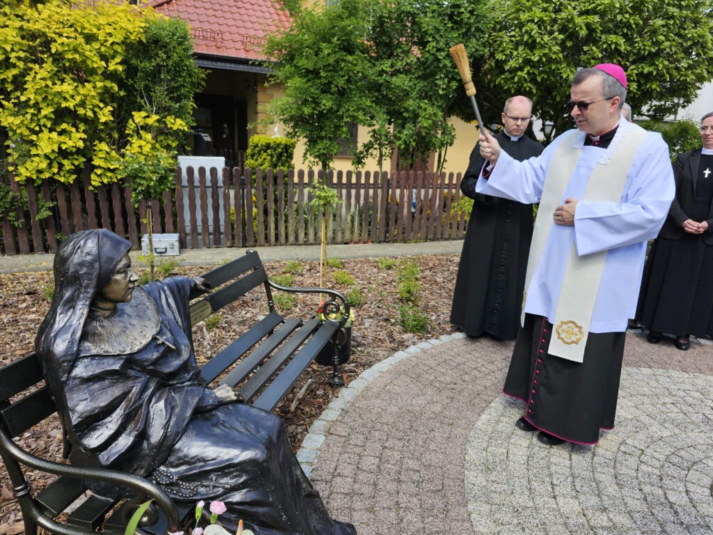 Ostrzeszów: bp Bryl poświęcił ławeczkę z figurą założycielki sióstr nazaretanek