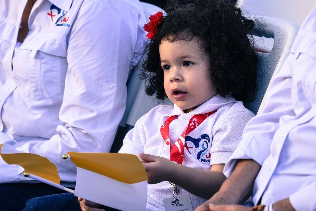 Dzieci tańczyły i zaśpiewały dla papieża, poprosiły go o modlitwę za swe rodziny, za ubogich, za Panamę, za cały świat, za dzieci i młodzież. Zapewniły również Franciszka, że dzieci modlą się za niego. Mały André przywitał się słowami: „Cześć, Ojcze, mam na imię André, przebij piątkę!”.