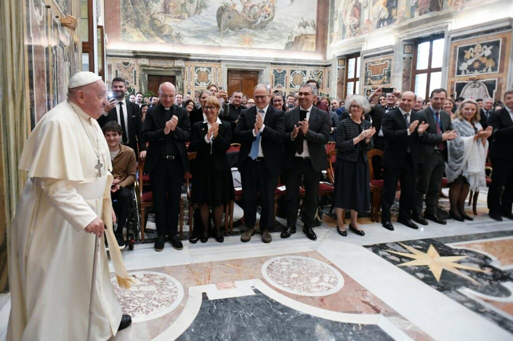 Fot. Vatican Media Budujcie mosty, docierajcie na peryferia i promujcie pokój – zachęcił Franciszek podczas dzisiejszej audiencji dla watykańskiej Dykasterii ds. Komunikacji. Papież mówił o swoim marzeniu o komunikowaniu się „od serca do serca” – nawet bez dużych pieniędzy.