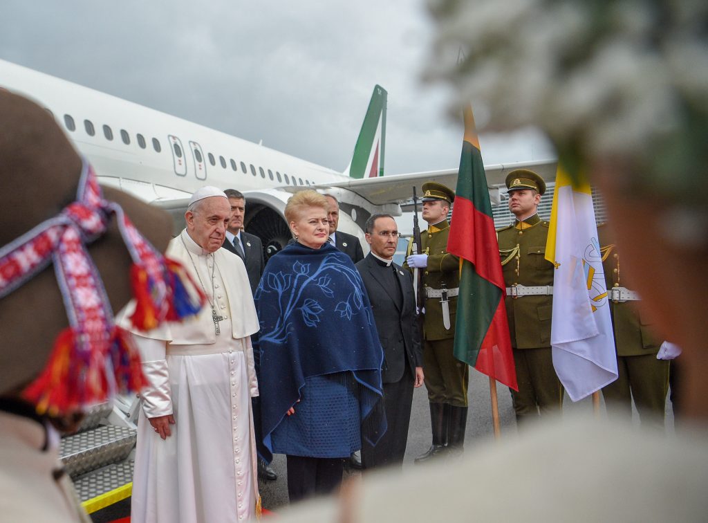 Fot. Catholic Church in Lithuania/ Laima PenekO godz. 11.16 (10.16 czasu polskiego) samolot Airbus 320 A włoskich linii lotniczych Alitalia „Aldo Palazzeschi” z papieżem Franciszkiem wylądował na międzynarodowym lotnisku w Wilnie. Ojciec Święty w dniach 22-25 września odwiedzi Litwę, Łotwę i Estonię. Jest to 25. podroż zagraniczna obecnego Następcy św. Piotra.