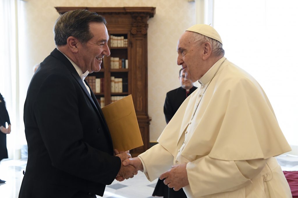 Fot. Twitter/usinholyseeDziś rano, w Pałacu Apostolskim w Watykanie, Ojciec Święty Franciszek przyjął na audiencji Jego Ekscelencję Josepha Simona Donnelly’ego, ambasadora Stanów Zjednoczonych Ameryki przy Stolicy Apostolskiej, z okazji wręczenia listów uwierzytelniających – podało watykańskie Biuro Prasowe.