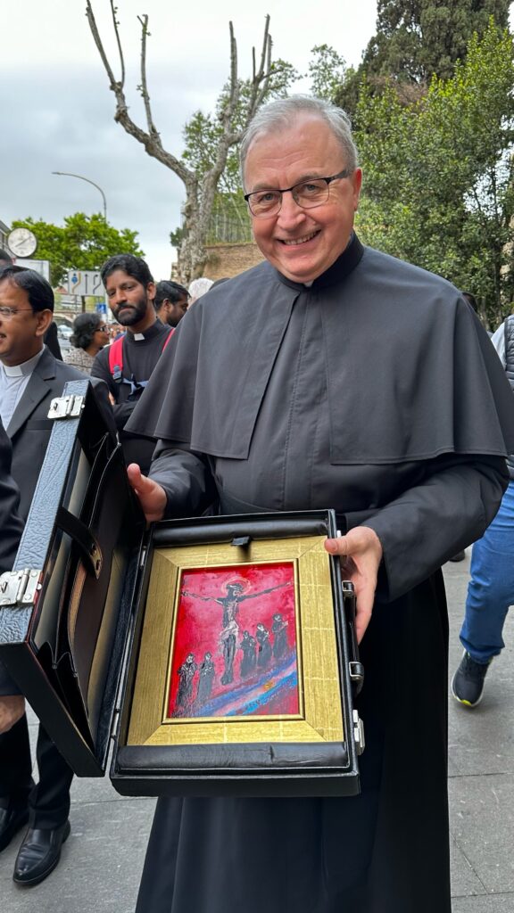 Obraz ten, jak powiedział Przełożony Generalny, jest także wyrazem pamięci o pallotynach i siostrach pallotynkach pracujących w miejscach, gdzie toczą się wojny. Autorem obrazu jest ks. Witold Urbanowicz SAC z Paryża.