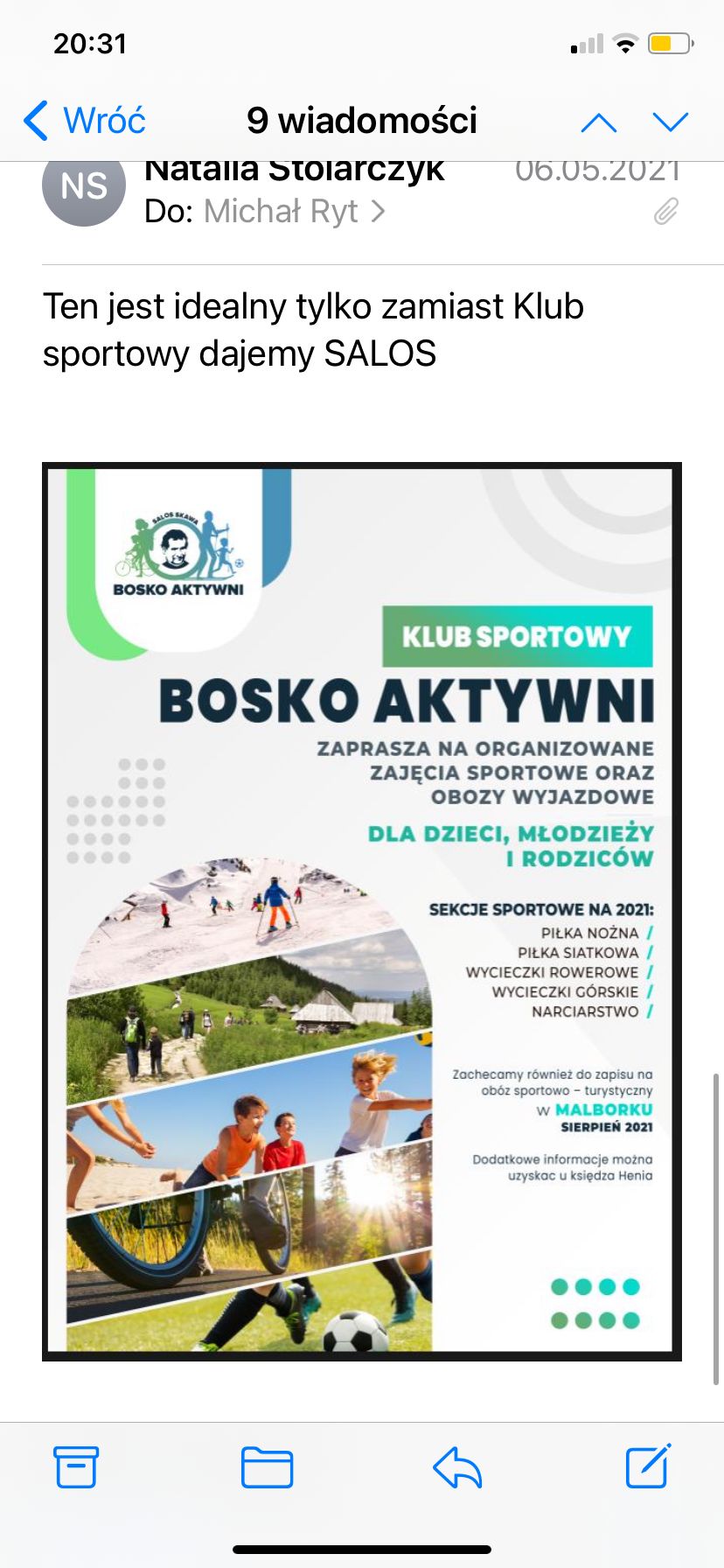 W kategorii „Uprawianie sportu” wymieniono utworzenie Stowarzyszenia Lokalnego (Klubu Sportowego) SALOP RP „Bosko Aktywni”, organizację obozu rekreacyjno-sportowego dla dzieci i młodzieży oraz rodzin. W parafii prowadzone są również działania mające na celu podnoszenie umiejętności sportowych parafian – np. kurs na instruktora jazdy na rowerze, działa też szkółka narciarka oraz organizowane są cykliczne zajęcia sportowe dla dzieci i młodzieży, dorosłych oraz innych grup parafian.