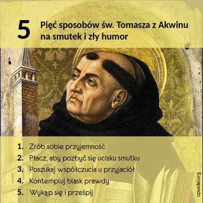 Do mnie dotarł znany tekst z Summa Theologiae 1- 2 zagadnienie 38, który mówi o lekarstwach na smutek i ból. Myślę, że przypomnienie tego tekstu może pomóc nam, a także by innym służyć radością.