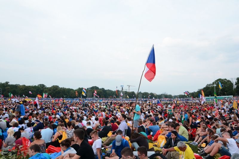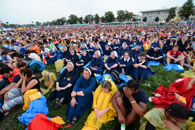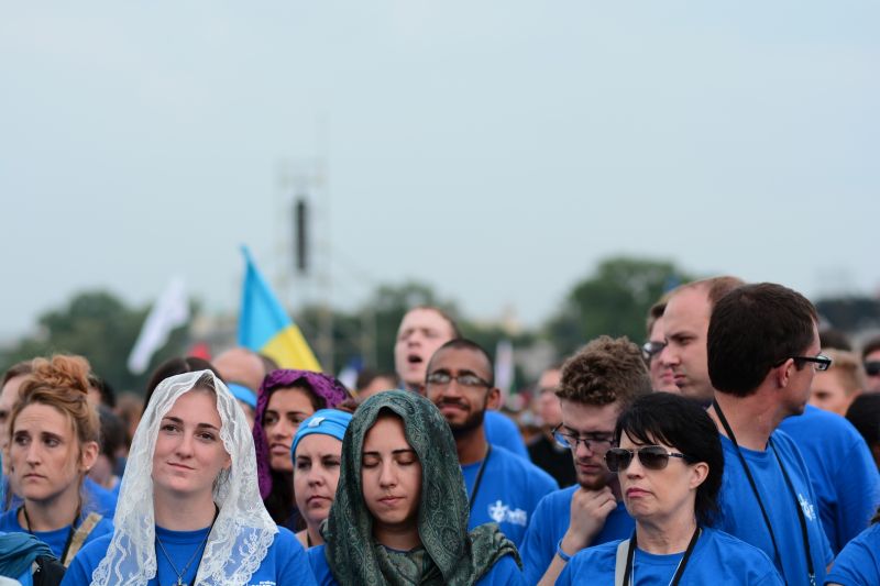 Pielgrzymi podczas Mszy otwarcia ŚDM na krakowskich Błoniach