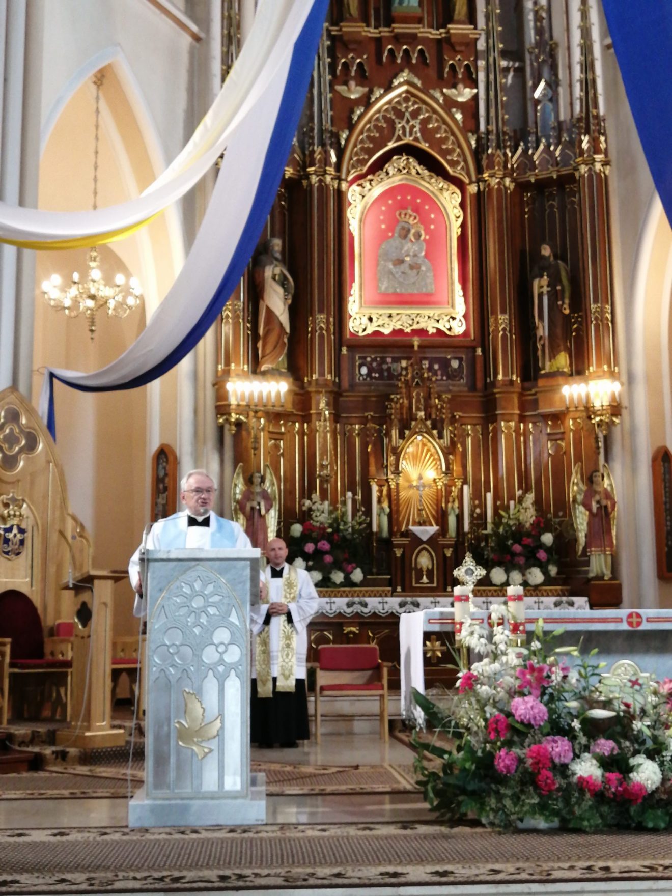 Centralnym punktem Pielgrzymki Kobiet do Rajgrodu była uroczysta Eucharystia pod przewodnictwem ks. dr Pawła Tobera, dyrektora Wydziału Duszpasterstwa Rodzin ełckiej kurii biskupiej. „Kościół, dla którego Maryja jest wzorem nie istnieje dla siebie, ale dla innych, dla świata do którego jest posłany, by nieść mu Dobrą Nowinę o Bogu, który zbawia” – mówił ks. Tober, witając pielgrzymów.
