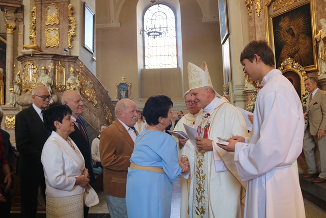 Zachęcał małżonków, aby swój wzrok zawsze kierowali w stronę Chrystusa. – Wszystkim jubilatom życzę, aby wiara w Jezusa Chrystusa ożywiała wasze relacje, żeby Chrystus był zawsze w centrum waszego życia i żebyście patrzyli na siebie i na waszą przyszłość przez pryzmat wiary, przez pryzmat miłości Chrystusa i przebaczenia – powiedział bp Buzun.