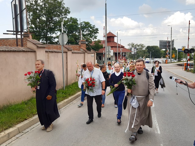 Grupa duchowych pątników dotarła do Łagiewnik, aby powitać utrudzonych kapłanów i uczestniczyć wraz z nimi we Mszy św. sprawowanej w Sanktuarium Miłosierdzia Bożego w Krakowie – Łagiewnikach.
