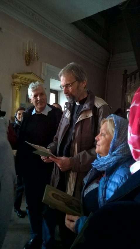 – W Europie żyjemy w stosunkowo pokojowych warunkach ale we wschodniej Ukrainie trwa wojna, widzimy coraz większą polaryzację wśród państw i narodów, coraz więcej zbrojeń po jednej i po drugiej stronie, więc pomyślałem sobie, że jedni inwestują w broń, a ja powinienem inwestować w dialog i modlitwę. Stało się to dla mnie tym bardziej oczywiste w tym roku, kiedy przeżywamy 100-lecie objawień fatimskich. A objawienia te wskazują na wielką silę modlitwy. Dlatego zaczynamy od modlitwy w Kazaniu, przed wizerunkiem Matki Bożej. Jesteśmy przekonani, że nasze pielgrzymowanie będzie miało wpływ na zmianę mentalności i uświadomienie sobie jakim straszliwym złem jest wojna – mówił ks. Deselaers 10 września podczas Mszy św. w kościele pw. Podwyższenia Krzyża Świętego w Kazaniu. W odprawionej po rosyjsku Eucharystii koncelebrowanej przez ks. Diogenesa Urquiza, wikariusza generalnego diecezji św. Klemensa w Saratowie, proboszcza parafii ks. Andrieja Starsewa oraz księży uczestników pielgrzymki.