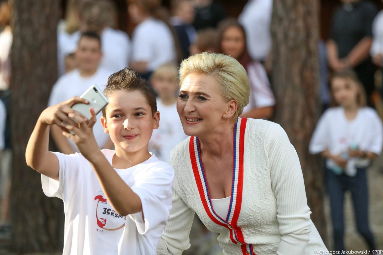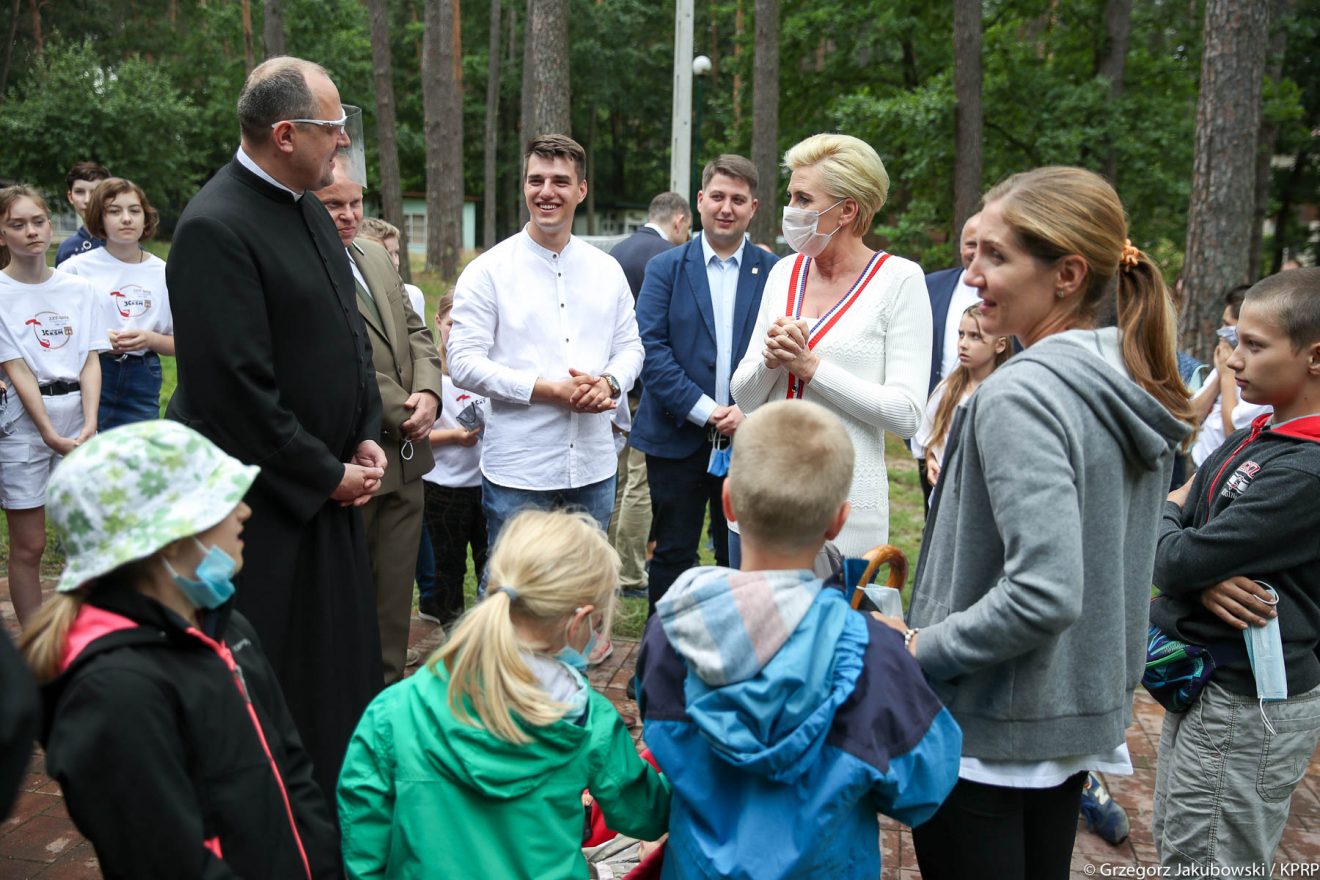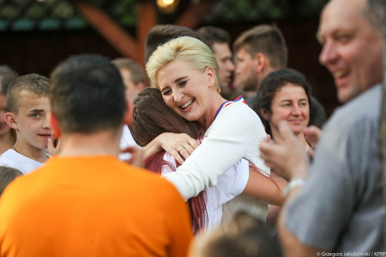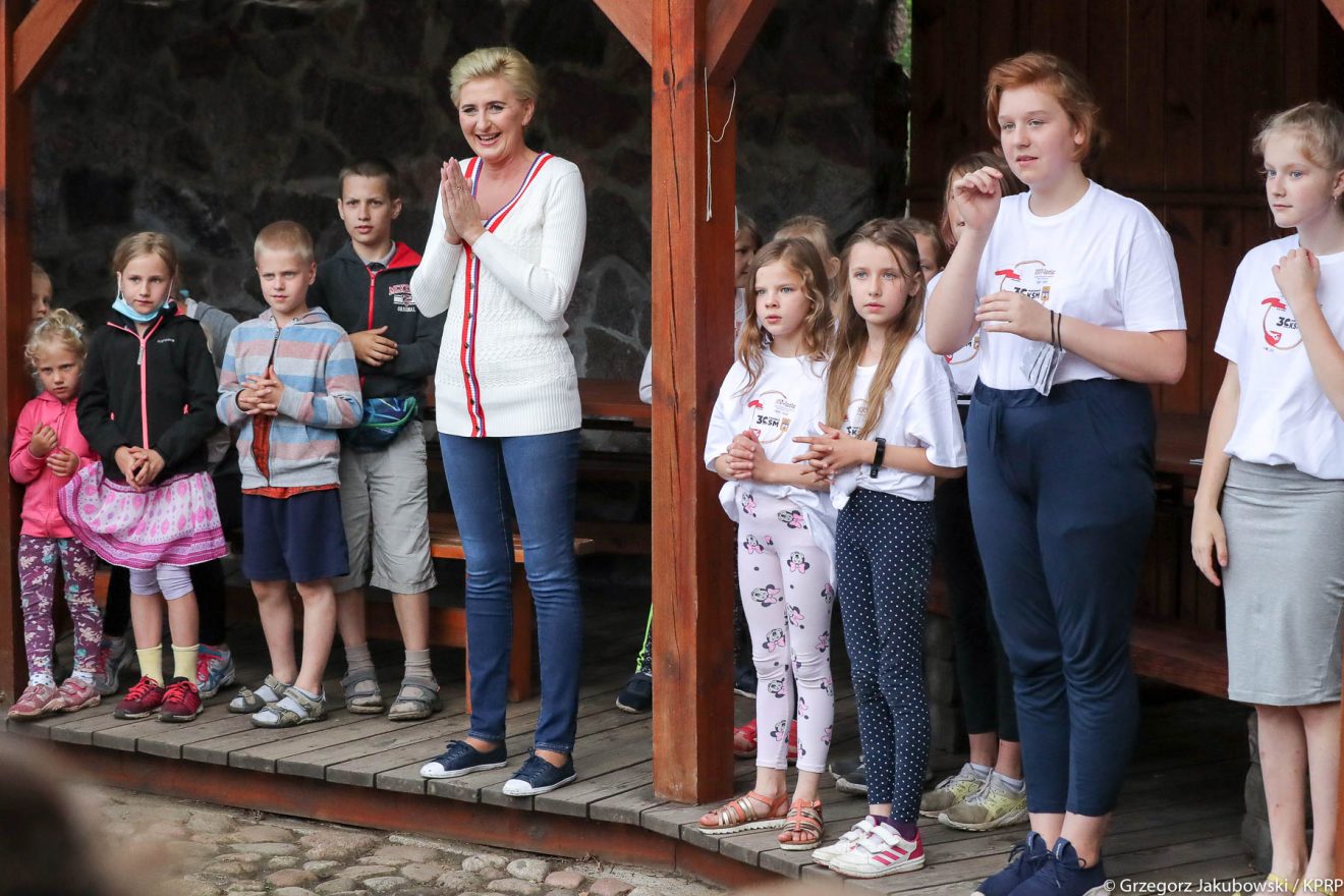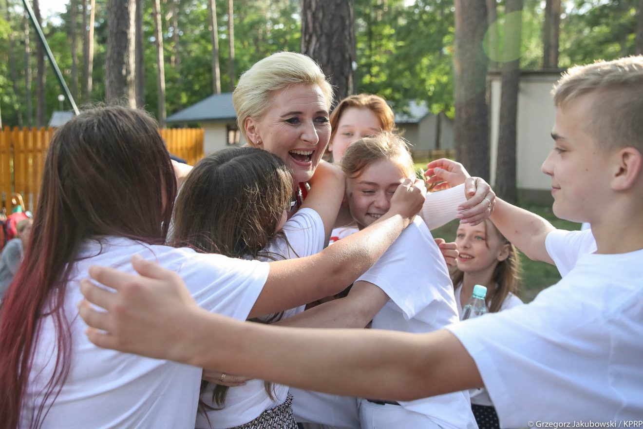 Fot. Grzegorz Jakubowski / KPRPAgata Kornhhauser-Duda spotkała się z dziećmi z Podlasia i Mazowsza przebywającymi na letnim obozie, organizowanym przez Katolickie Stowarzyszenie Młodzieży Diecezji Drohiczyńskiej. Małżonka Prezydenta RP przyjechała do Nadbużańskiego Ośrodka Edukacji w Broku, aby wziąć udział we wspólnych warsztatach i ognisku z uczestnikami wakacji.