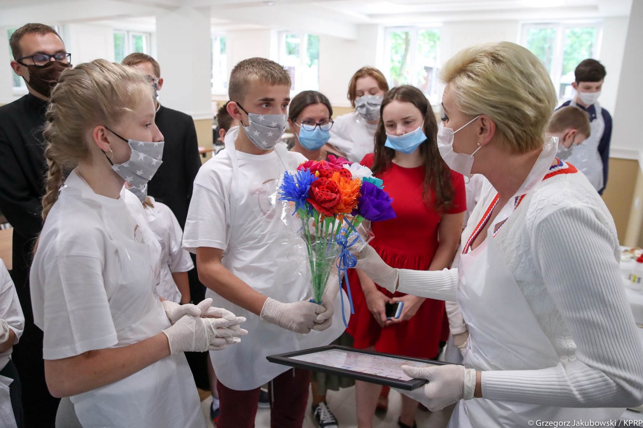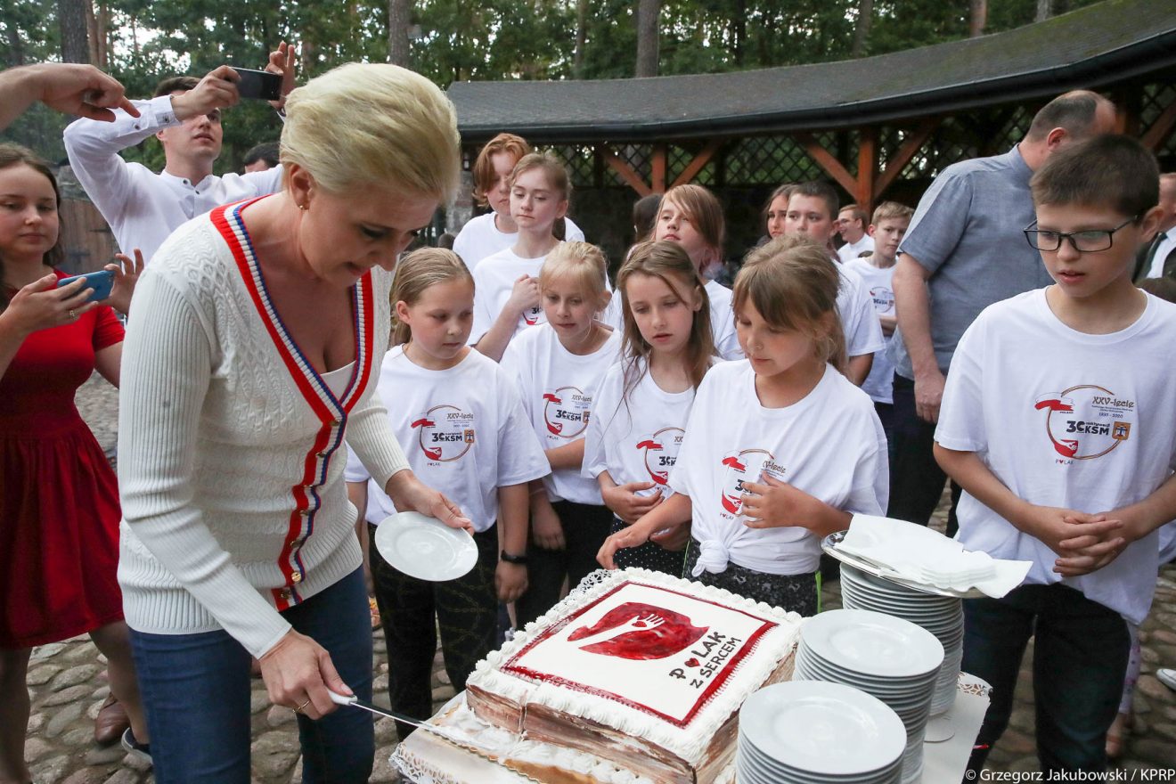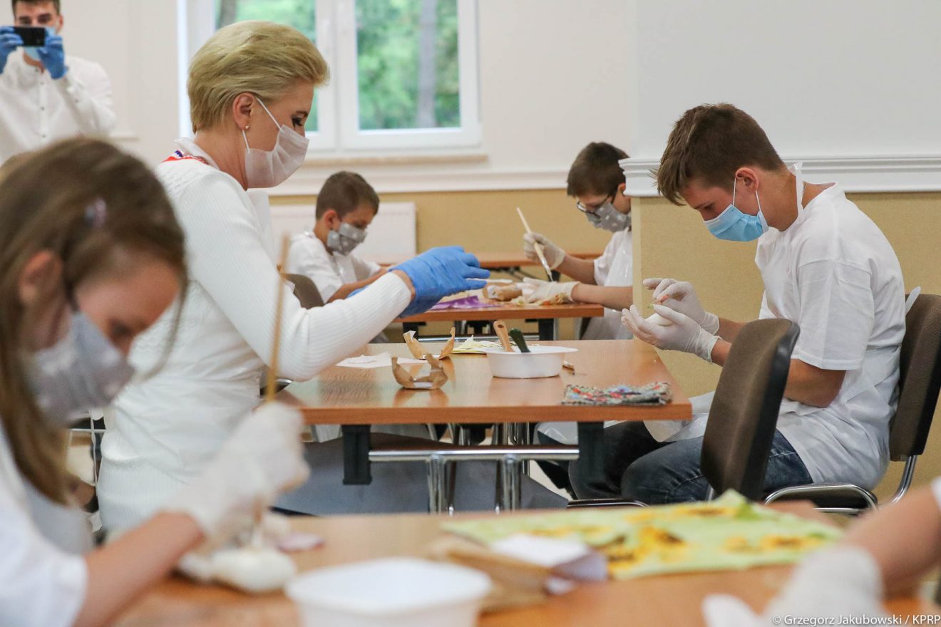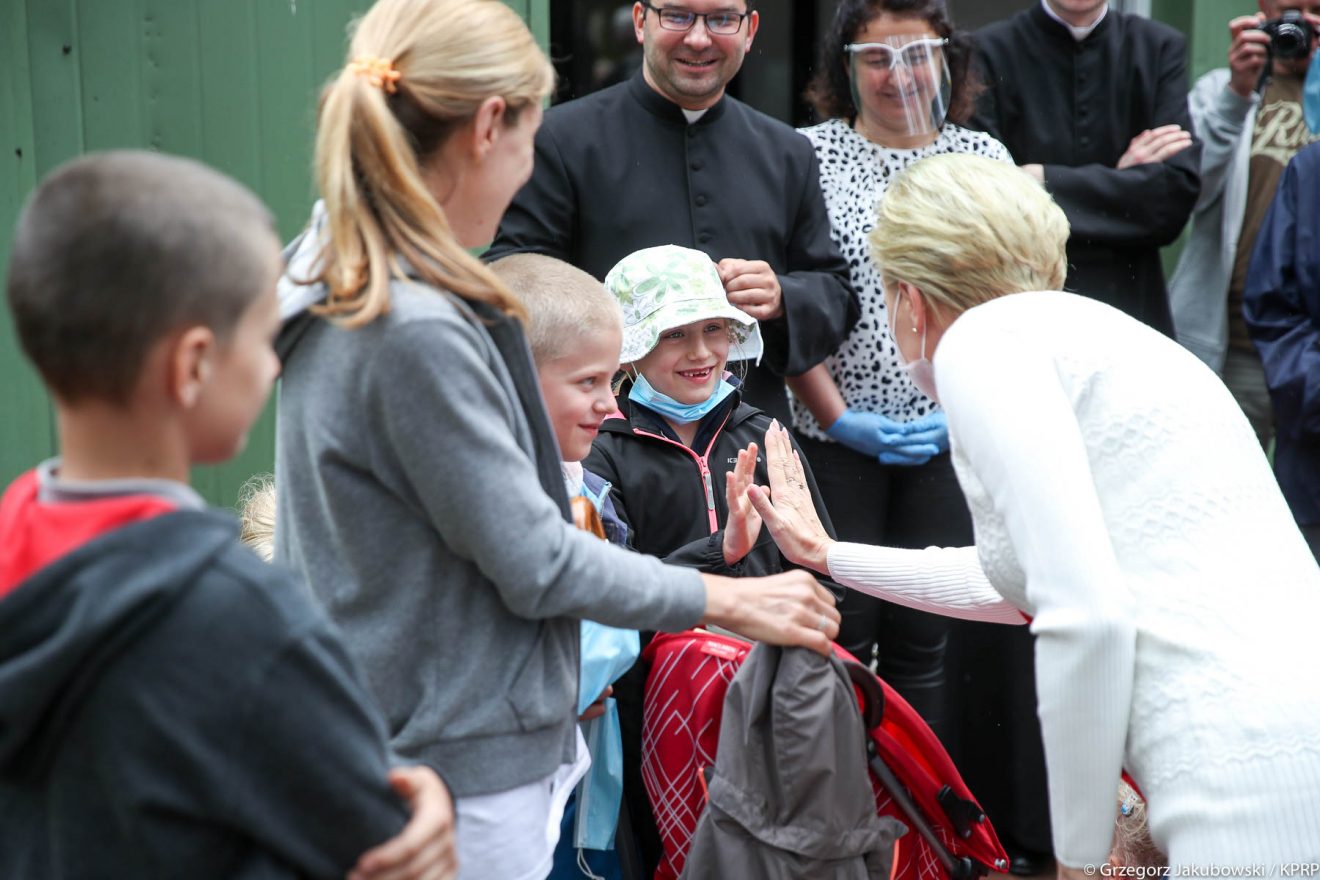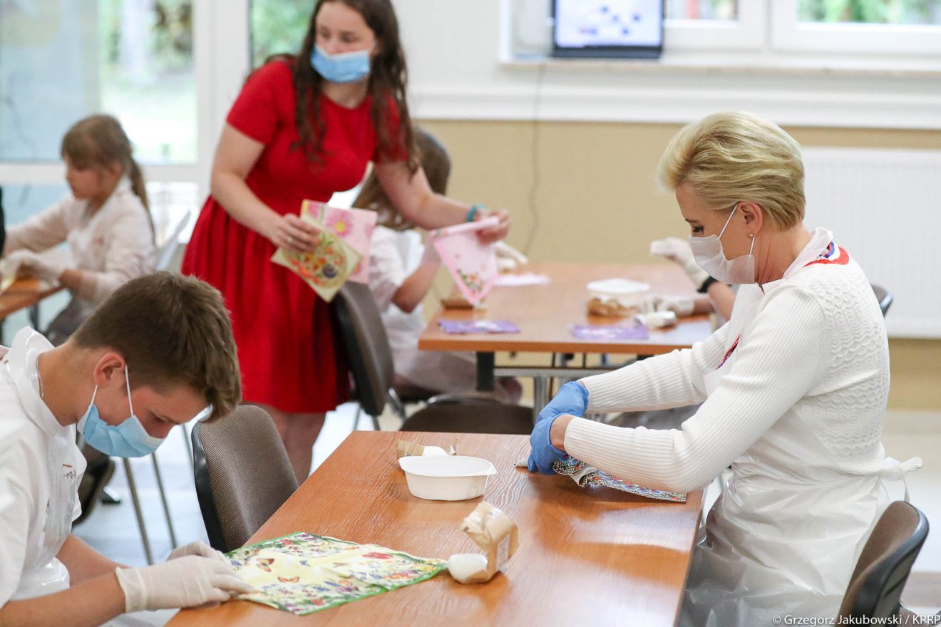 Fot. Grzegorz Jakubowski / KPRPAgata Kornhhauser-Duda spotkała się z dziećmi z Podlasia i Mazowsza przebywającymi na letnim obozie, organizowanym przez Katolickie Stowarzyszenie Młodzieży Diecezji Drohiczyńskiej. Małżonka Prezydenta RP przyjechała do Nadbużańskiego Ośrodka Edukacji w Broku, aby wziąć udział we wspólnych warsztatach i ognisku z uczestnikami wakacji.