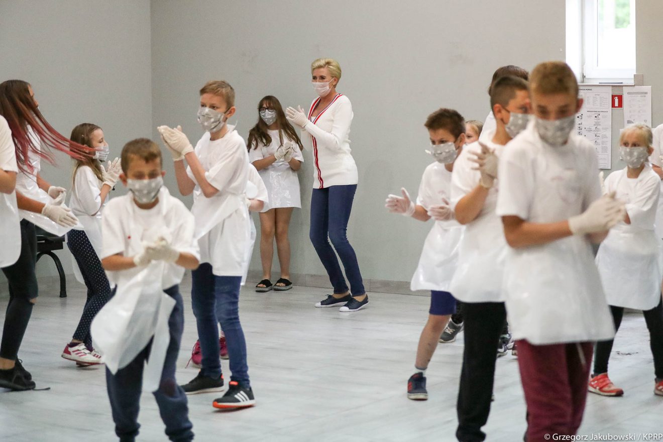 Pierwsza Dama dołączyła do warsztatów artystycznych z decoupage’u oraz zajęć tanecznych. Następnie została zaproszona do rozmów przy ognisku ze wszystkimi uczestnikami obozu i kadrą pedagogiczną. Agata Kornhauser-Duda, pytała dzieci i młodzież o bezpieczne zachowania podczas letniego wypoczynku.