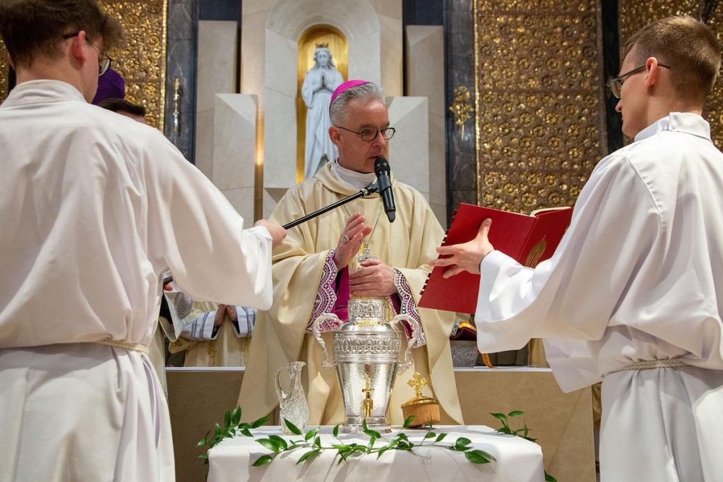 Podczas liturgii kapelani odnowili przyrzeczenia kapłańskie. W procesji z darami w asyście żołnierzy Wojsk Lądowych, Sił Powietrznych i Marynarki Wojennej do ołtarza przyniesiono balsam i olej na krzyżmo oraz olej chorych. Olej chorych został pobłogosławiony przez biskupa polowego w czasie liturgii eucharystycznej. Krzyżmo bp Lechowicz przygotował i konsekrował po Komunii św. Po liturgii kapelani pobrali oleje, by móc wykorzystać je w pełnionej posłudze duszpasterskiej.