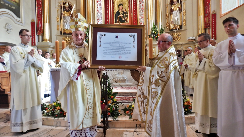 Nowo mianowany kustosz Sanktuarium św. Jana Kantego ks. Zbigniew Jurasz złożył przysięgę, po czym biskup wręczył mu specjalnie oprawiony dekret z tekstem o ustanowieniu sanktuarium.