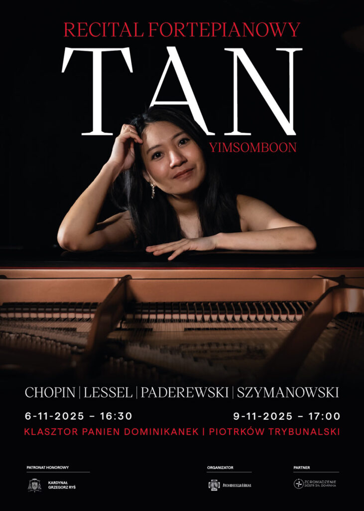 Klasztorne mury ponownie wypełnią się muzyką. W niedzielny wieczór, 9 listopada, w zabytkowym atrium dawnego Klasztoru Panien Dominikanek w Piotrkowie Trybunalskim wystąpi Tanchanok Yimsomboon – pianistka pochodząca z Tajlandii, która od lat rozwija swoją artystyczną drogę w europejskich ośrodkach muzycznych. Zainteresowanie wydarzeniem okazało się tak duże, że wszystkie miejsca zostały zarezerwowane z wyprzedzeniem.