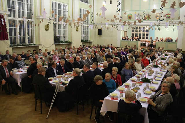 Fot. Ewa Kotowska-Rasiak KAIPonad 300 osób wzięło udział w spotkaniu wigilijnym dla ubogich i samotnych w Domu Parafialnym im. ks. Piotra Skargi w Pleszewie. Do wieczerzy wigilijnej zasiadł biskup kaliski Edward Janiak.