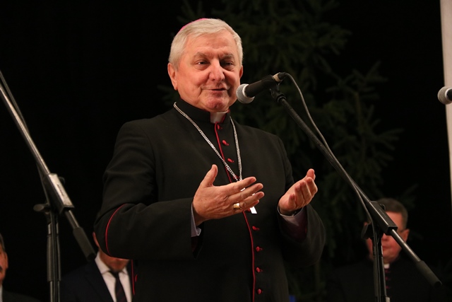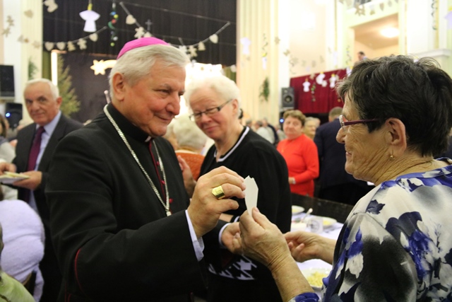 Życzył, aby każdy na swojej drodze spotykał dobrych ludzi. – Najważniejsze jest to, żeby z nikim nie być skłóconym, nikomu źle nie życzyć, żeby być dobrym człowiekiem. Życzę, aby każdy spotkał na swojej drodze życia dobrego człowieka i żebyście dla innych byli jak anioły przez uśmiech, podanie ręki, życzliwe odezwanie się do sąsiadów. Życzę też, żeby radość kolęd tej wielkiej tajemnicy Bożego Narodzenia przenieść do domów rodzinnych – powiedział bp Janiak.