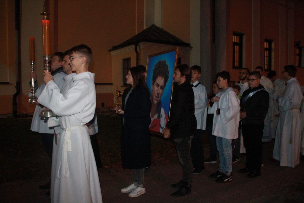 postaci bł. Carlo Acutisa; wzięli udział w adoracji Najświętszego Sakramentu, a także obejrzeli film dokumentalny o młodym błogosławionym.
