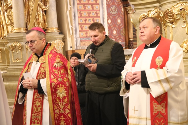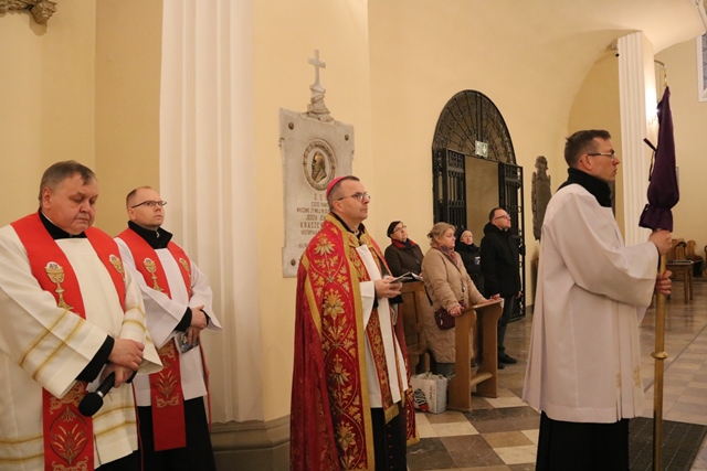 – Wielki Tydzień to dla nas chrześcijan szczególny czas, w którym towarzyszymy Panu naszemu Jezusowi Chrystusowi, który bierze krzyż, podejmuje cierpienie, umiera na krzyżu, a potem także zmartwychwstaje. Chcemy o tym pamiętać i na nowo przypomnieć sobie to wszystko, co Jezus dla nas uczynił. Chcemy też prosić Pana, aby umocnił nas w dźwiganiu naszych krzyży – mówił bp Bryl rozpoczynając drogę krzyżową.