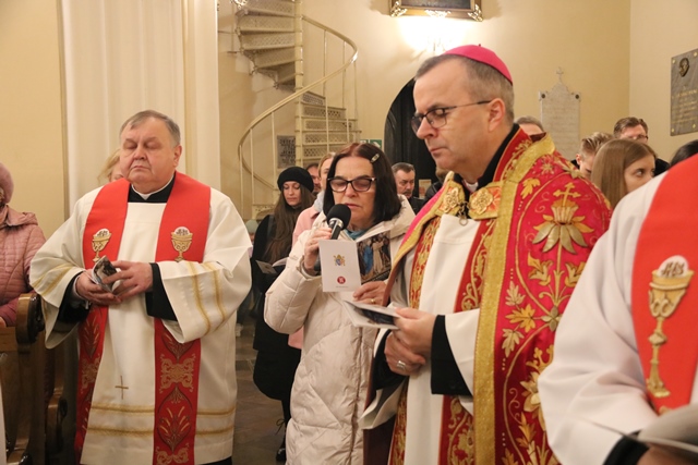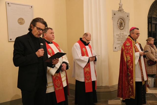 W drodze krzyżowej uczestniczyli kapłani: ks. prał. Adam Modliński, proboszcz katedry, ks. Adam Kraska, diecezjalny duszpasterz środowisk twórczych i ks. Szymon Rybak, kapelan biskupa.