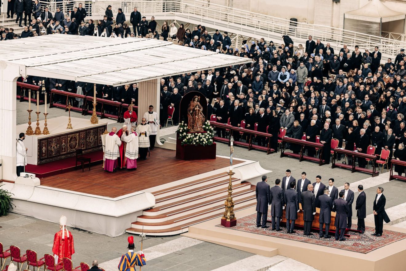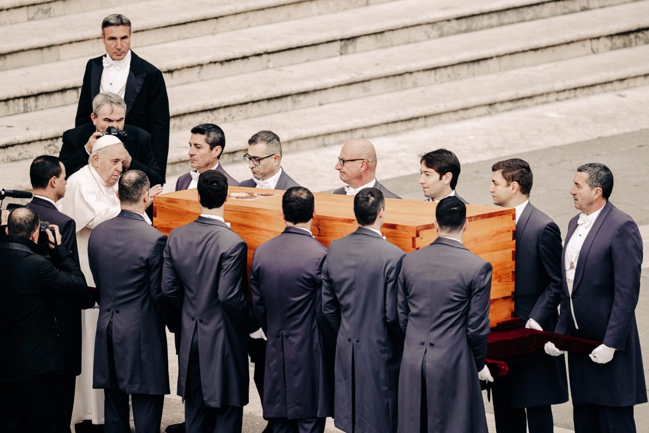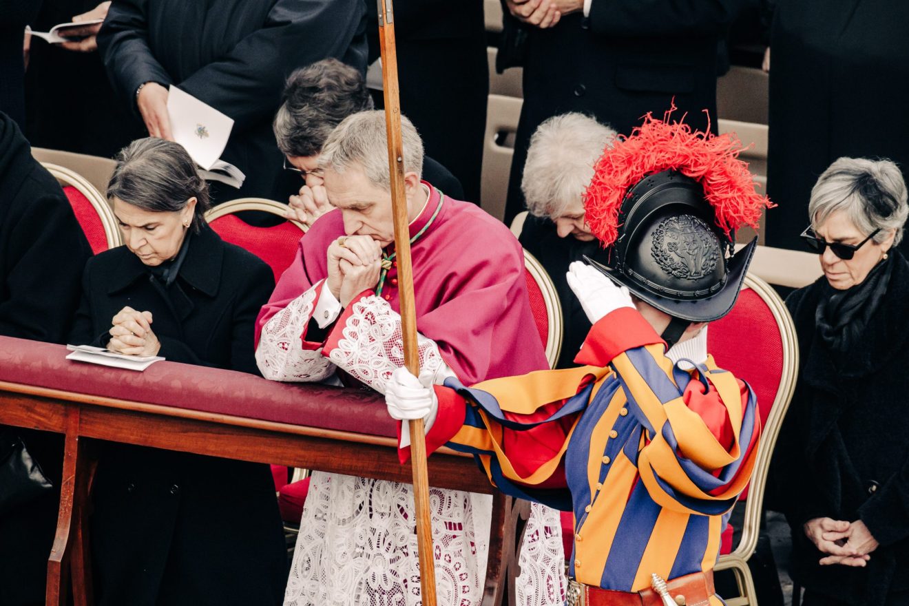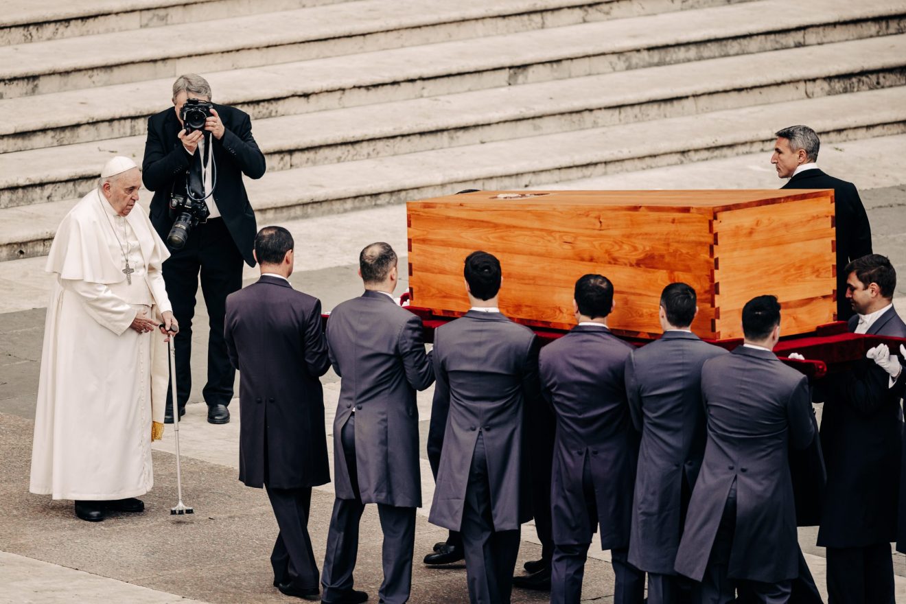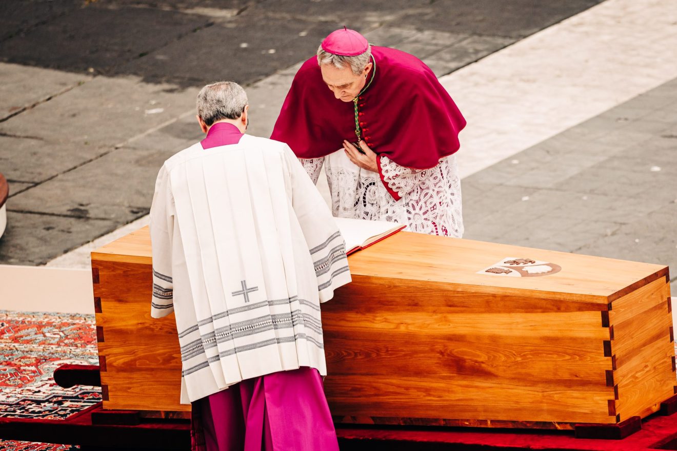 Przed Mszą pogrzebową o godz. 7.00 rano w bazylice św. Piotra w małym gronie miał miejsce obrzęd zamknięcia trumny. Wzięli w nim udział m.in. mistrz ceremonii papieskich, prał. Diego Ravelli, kamerling Kościoła, kard. Kevin Farrell, archiprezbiter Bazyliki św. Piotra, kard. Mauro Gambetti, kilku kardynałów i prywatny sekretarz zmarłego papieża seniora, abp Georg Gänswein.