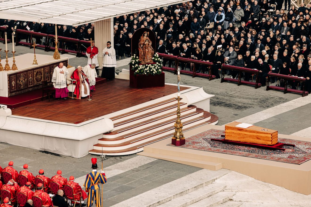 „Jak kobiety z Ewangelii przy grobie – mówił papież – jesteśmy tutaj z wonnościami wdzięczności i namaszczeniem nadziei, aby jeszcze raz okazać mu miłość, która nie ginie; chcemy to uczynić z tym samym namaszczeniem, mądrością, łagodnością i oddaniem, jakimi potrafił obdarowywać przez lata. Chcemy wspólnie powiedzieć: «Ojcze, w Twoje ręce powierzamy jego ducha»”.