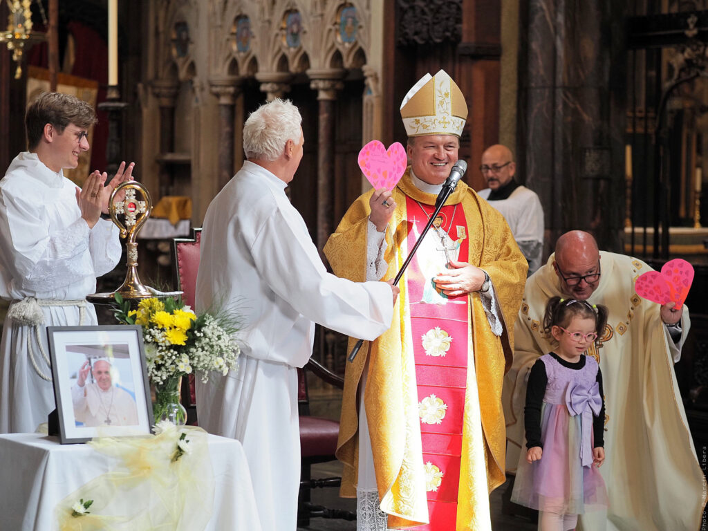 Na zakończenie liturgii ks. Rajewski odczytał list, jaki do papieża Franciszka, wraz ze swoją koleżanką Anabelle, z własnej inicjatywy napisała niespełna 11-letnia parafianka Madzia Krawczyk. „Drogi papieżu Franciszku, dziękujemy za to, że wniosłeś pokój do tego świata i prowadziłeś nas w trudnych chwilach. Dziękujemy za błogosławienie każdą i każdego z nas, nawet wtedy, gdy nie potrafiliśmy uwierzyć w siebie. Sprawiłeś, że ten świat stał się lepszym miejscem. Wniosłeś światło do naszych serc, tak jak Jezus to czynił. Bez Ciebie świat i nasze życie nigdy już nie będą takie same. Jesteśmy ogromnie wdzięczne, że byłeś częścią naszego życia. Bardzo będzie nam Ciebie brakować. Z miłością – Magdalena i Anabelle””. List został zakopany w ogrodach Pałacu Kensington. „Kto wie, może znajdzie go kiedyś jakiś bawiący się w przypałacowym ogrodzie książę Grzegorz XVII?” – żartował proboszcz.
