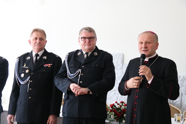 W swoim wystąpieniu bp Łukasz Buzun wskazywał na ważną rolę strażaków w życiu społeczeństw lokalnych. – Straż spełnia różne zadania od udziału w akcjach ratowniczych po uświetnianie uroczystości kościelnych. Życzę wam, aby ta posługa dawała satysfakcję i radość – powiedział biskup pomocniczy diecezji kaliskiej, który wyjawił, że w młodości miał okazję grać w orkiestrze strażackiej.