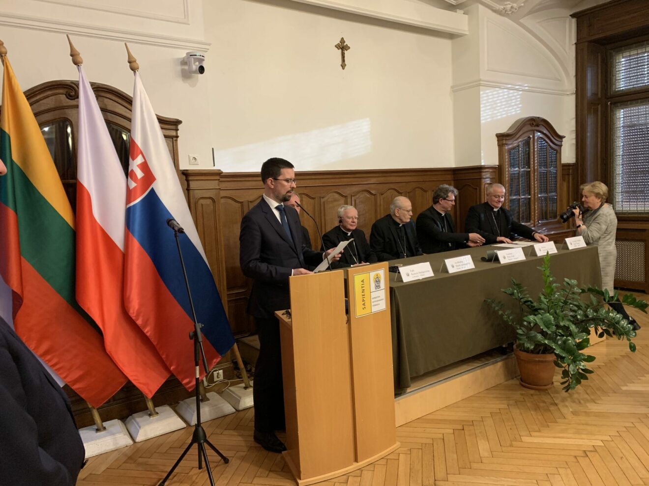 Wygłoszono cztery referaty. Abp Jędraszewski przybliżył „znaczenie św. Jadwigi Andegaweńskiej w życiu wiary, historii Polski, w stosunkach polsko-węgierskich i regionu”. Bp Trstenský wskazał na „znaczenie naszych wspólnych świętych w relacjach między naszymi narodami”. Mówił, że święte kobiety, idąc jak Abraham drogą wiary, zaradzały różnym ubóstwom: materialnemu, kulturowemu i duchowemu. Jego zdaniem, dziś potrzebujemy takiej ewangelicznej troski o bliźnich i nasze wspólnoty, potrzebujemy odwagi, którą może dać tylko Chrystus. Bp Ważny mówił o znaczeniu „św. Kingi z Árpádów w życiu wiary, w historii Polski i w relacjach polsko-węgierskich”. Z kolei ks. Smilgevičius przedstawił „znaczenie św. Jadwigi Andegaweńskiej w życiu wiary, w historii Litwy i w relacjach między narodami Europy Środkowej”.