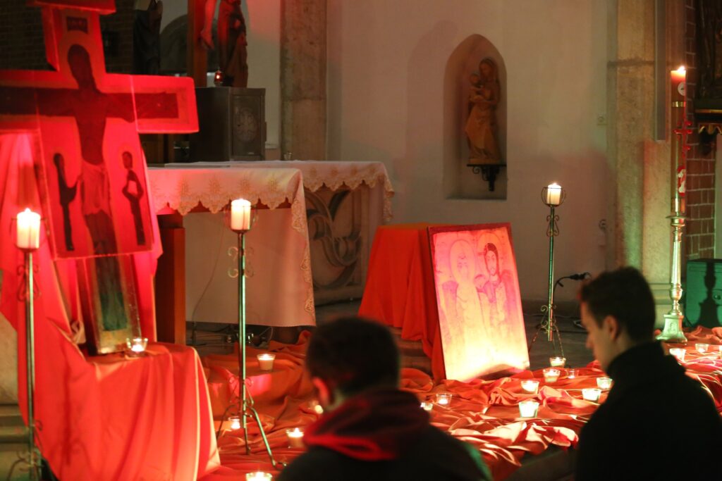 W centrum świątyni ustawiono ikonę krzyża. Modlitwa rozpoczęła się odśpiewaniem słów Pana Jezusa: „Pokój zostawiam wam, pokój mój daję wam” (J 14,27). W słowie wprowadzającym przypomniano, że intencją tej modlitwy jest odwaga wyciągniętych rąk. Następnie brat Maciej przypomniał, iż Wrocław trzy razy gościł Europejskie Spotkanie Młodych organizowane przez Wspólnotę z Taizé.