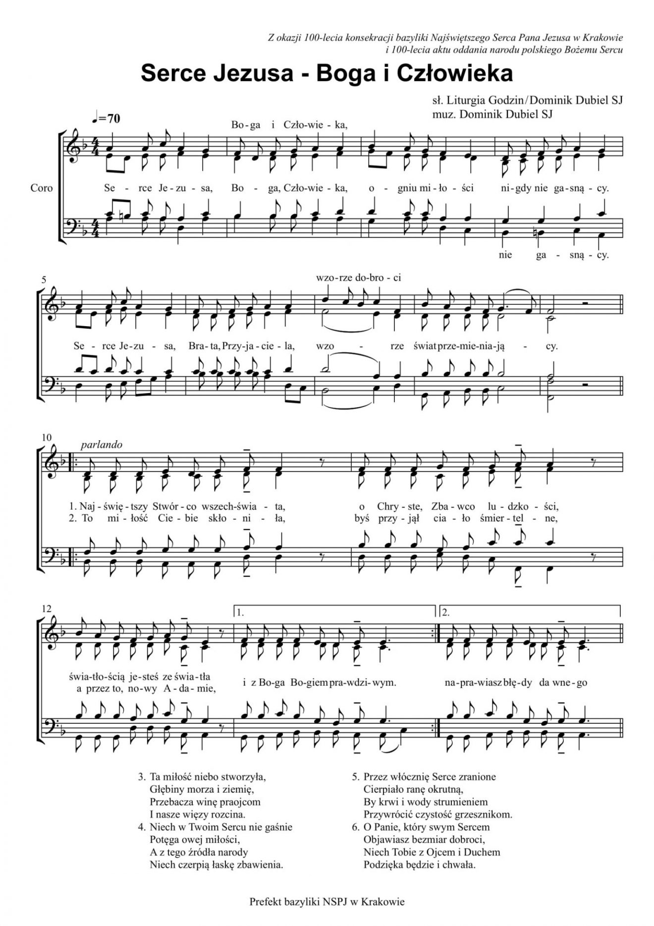 – Przygotowując się do jubileuszu 100-lecia konsekracji naszej bazyliki pw. Najświętszego Serca Pana Jezusa w Krakowie oraz do odnowienia aktu poświęcenia narodu polskiego Bożemu Sercu, również w 100. jego rocznicę, prefekt bazyliki o. Jarosław Naliwajko SJ stwierdził, że byłoby fajnie, gdyby powstała pieśń o Sercu Jezusa na tę okazję. Poprosił mnie o pomoc w kontaktach ze światem muzycznym. Zwróciliśmy się więc do prof. Henryka Jana Botora z prośbą o napisania dla nas takiej pieśni. Wcześniejsze zobowiązania nie pozwoliły mu na podjęcie naszego zamówienia, ale zarekomendował… mnie. Zmotywowany dobrymi słowami i zachętą profesora, który poznał moją działalność muzyczną w czasach, kiedy studiowałem (również pod jego okiem) na Akademii Muzycznej w Krakowie, postanowiłem podjąć się tego zadania – opowiada KAI Dominik Dubiel SJ.