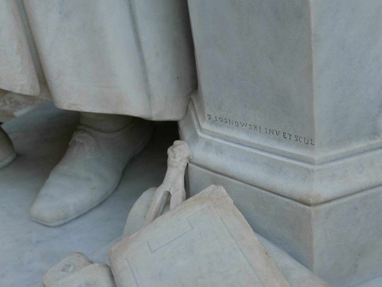 Pomnik powstał przy okazji 400. rocznicy urodzin Kopernika i od początku miał silny wydźwięk patriotyczny. Sosnowski, który przez większość życia mieszkał we Włoszech, tworzył swoje rzeźby z myślą o utrwaleniu polskiej kultury i historii za granicą. Dziś, niemal 150 lat później, ten skromny, lecz piękny pomnik jest żywym świadectwem tej misji. „To pierwsza poważna konserwacja figury. Ważnym elementem prac była również częściowa rekonstrukcja prawej ręki astronoma” – zauważa Ługowski.