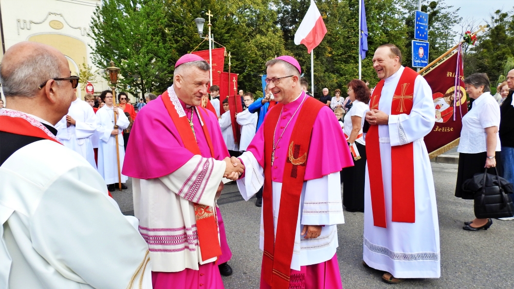 Mszy św. przewodniczył biskup bielsko-żywiecki Roman Pindel, który zaznaczył, że pielgrzymi przybyli do Cieszyna z wielu stron: „Gromadzimy się przy ołtarzu i przy relikwiach naszego męczennika, by wsłuchać się w słowo Boże i uczestniczyć w uobecnieniu ofiary Chrystusa” – powiedział na początku, akcentując, jak ważna jest dziś modlitwa o pokój na świecie.