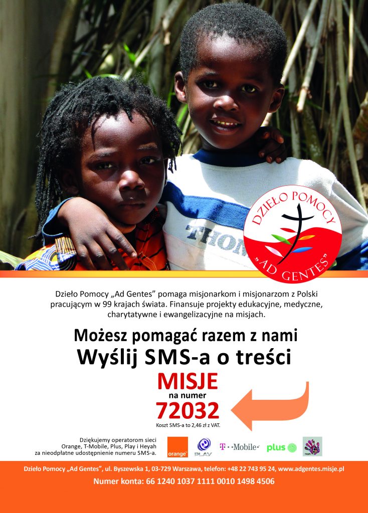 Dzieło Pomocy „Ad Gentes” Komisji Episkopatu Polski ds. Misji od lat wspiera dzieci na misjach. Dzięki środkom zbieranym w ciągu roku za pomocą sms-a wysyłanego na numer 72032 o treści „Misje” każdego roku udaje się zrealizować pięć projektów pomocowych.