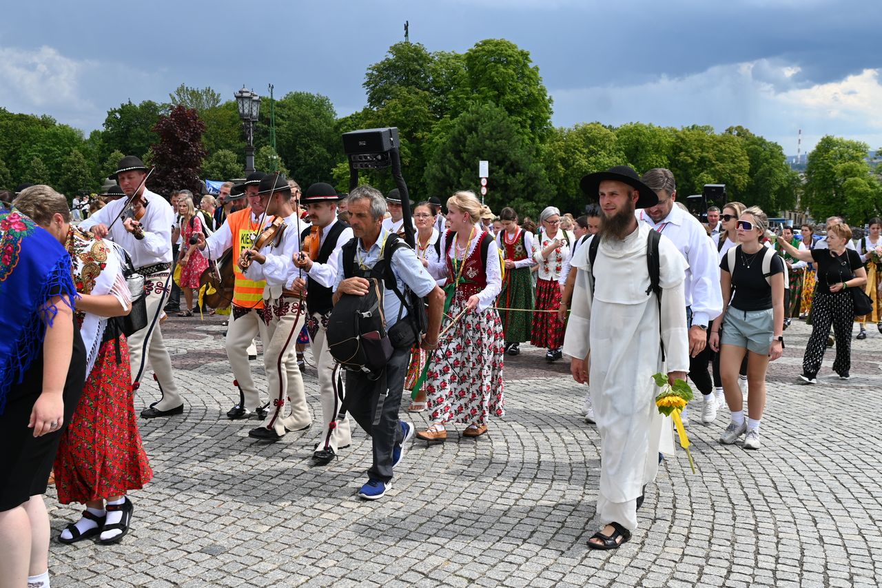 Fot. Jan Głąbiński Ponad tysiąc pątników dotarło na Jasną Górę 31 lipca w 44. Góralskiej Pieszej Pielgrzymce do Królowej Polski. W strojach regionalnych pokłonili się Czarnej Madonnie. Wcześniej na Wałach Jasnogórskich, przy muzyce i śpiewie podhalańskich pieśni, wielu z pielgrzymów przyjmując postawę krzyża modliło się w chwili ciszy, a grupa z Rabki zatańczyła po góralsku.