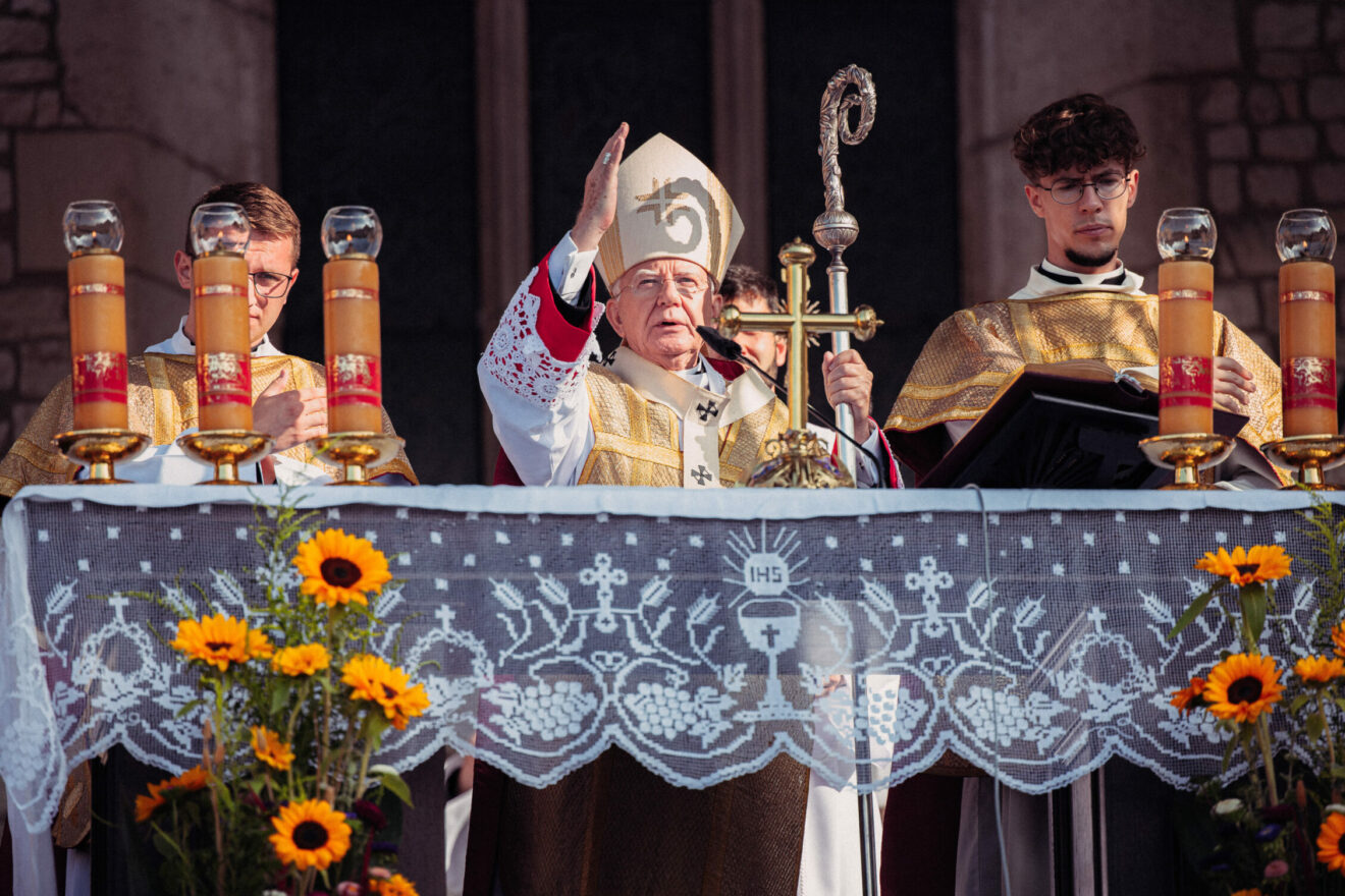 Do szczególnych intencji arcybiskup zaliczył modlitwę za rodziny, „by były Bogiem silne; by za wszelką cenę chroniły swoją jedność, nierozerwalność; by były nie tylko znakiem sprzeciwu dla tego świata, który podważa w swoich współczesnych ideologiach godność kobiety i mężczyzny, ich naturalne powołanie do ojcostwa i macierzyństwa, ale także dawały znak nadziei światu i pokazywały, jak można żyć razem, jak można się wzajemnie miłować, jak za siebie ponosić odpowiedzialność w wymiarze doczesnym, a przede wszystkim wiecznym”. Prosił też o modlitwę za polskie dzieci i młodzież, którym obecne władze chcą odebrać możliwości nauczania chrześcijańskiej wiary w szkołach, jakie były dotychczas. – Czynią to w sposób arbitralny, bez jakichkolwiek porozumień i właściwego dialogu. A przecież tu chodzi o przyszłość dzieci, młodzieży, naszej ojczyzny, o jej tożsamość, której nie możemy zatracić, którą musimy wybronić, także modlitwą i także pielgrzymim trudem zmierzania na Jasną Górę – apelował metropolita.