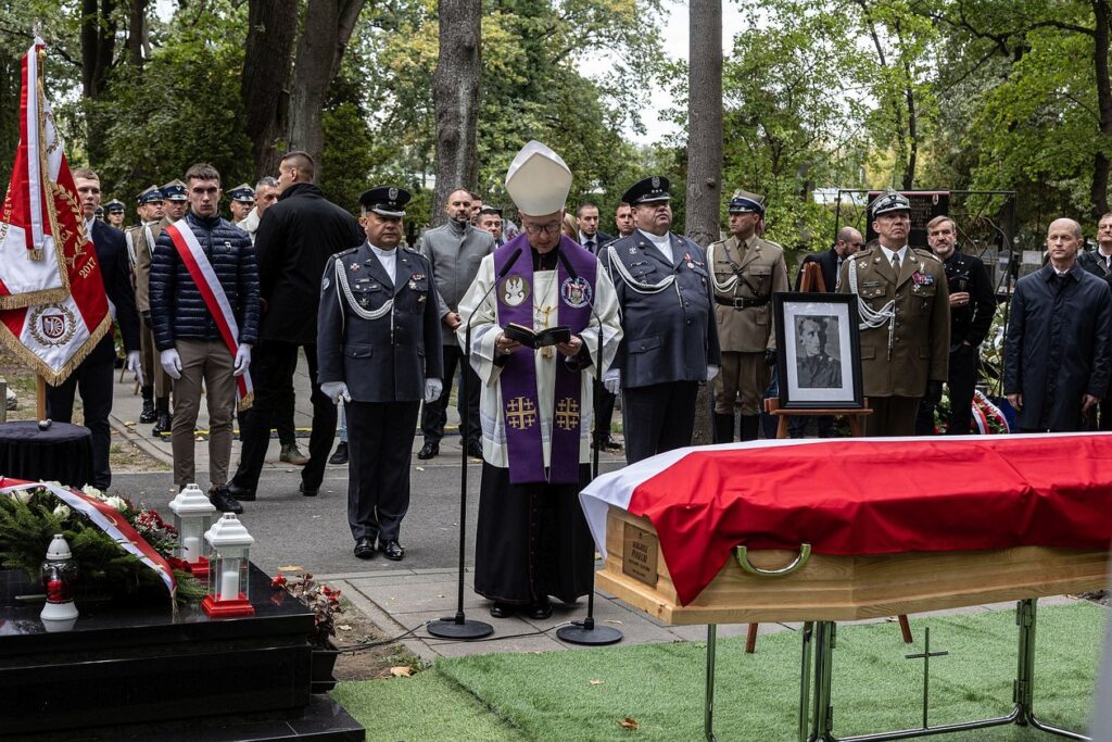 Uroczystości przeniosły się na Cmentarz Wojskowy na Powązkach, gdzie zmarłego żegnał m.in. prezydent Karol Nawrocki.