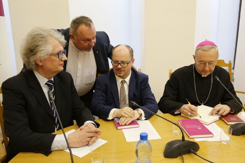 Fot. Monika Drwal / episkopat.plKsiążkowe wydanie katechez abp. Stanisława Gądeckiego i abp. Marka Jędraszewskiego wygłoszonych w jubileuszowym roku 1050-lecia Chrztu Polski oraz płyta z utworami muzycznymi inspirowanymi dziesięciorgiem przykazań, składają się na projekt „Dekalog”, którego premiera odbyła się 24 marca br. w siedzibie Konferencji Episkopatu Polski. Częściowy dochód ze sprzedaży płyt wesprze projekty charytatywne Papieskiego Stowarzyszenia „Pomoc Kościołowi w Potrzebie”.