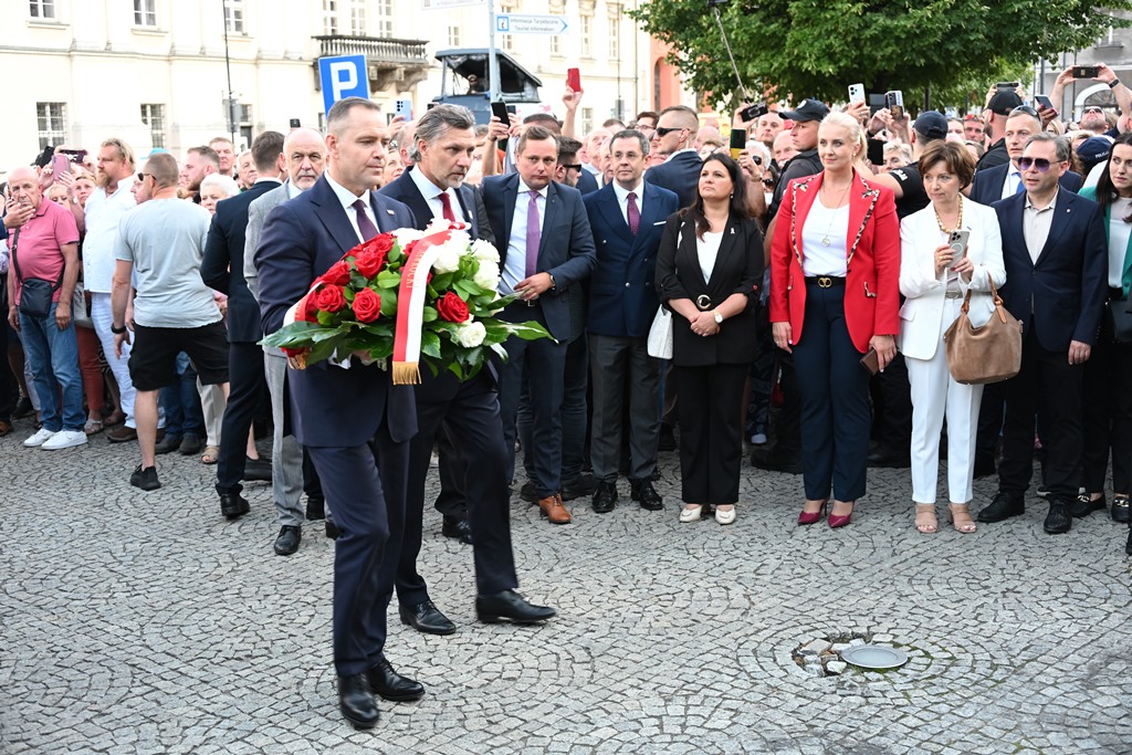 Po spotkaniu z mieszkańcami Kalisza na Rynku prezydent Karol Nawrocki udał się pod pomnik św. Jana Pawła II, gdzie złożył wiązankę kwiatów.