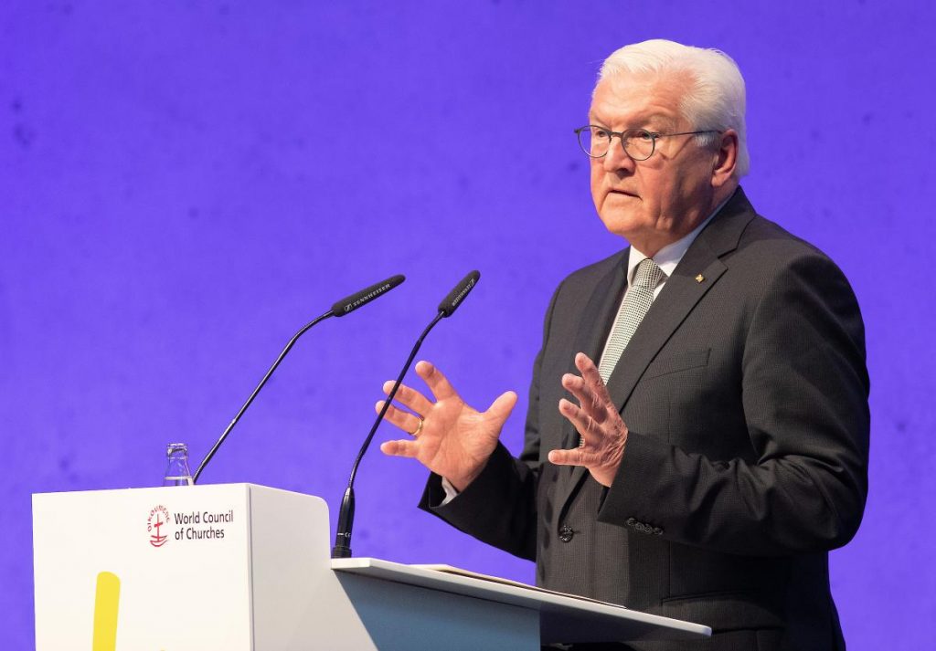 Fot: Mike DuBose/WCCPrezydent Niemiec Frank-Walter Steinmeier na otwarciu 11. Zebrania Ogólnego Światowej Rady Kościołów w Karlsruhe 31 sierpnia skrytykował Rosyjski Kościół Prawosławny (RKP) za wspieranie agresywnej wojny Rosji z Ukrainą. Prezydent powiedział, że przywódcy Rosyjskiego Kościoła Prawosławnej prowadzą obecnie swoich wiernych i cały swój Kościół straszną, bluźnierczą drogą, która jest wręcz wroga wierze”.