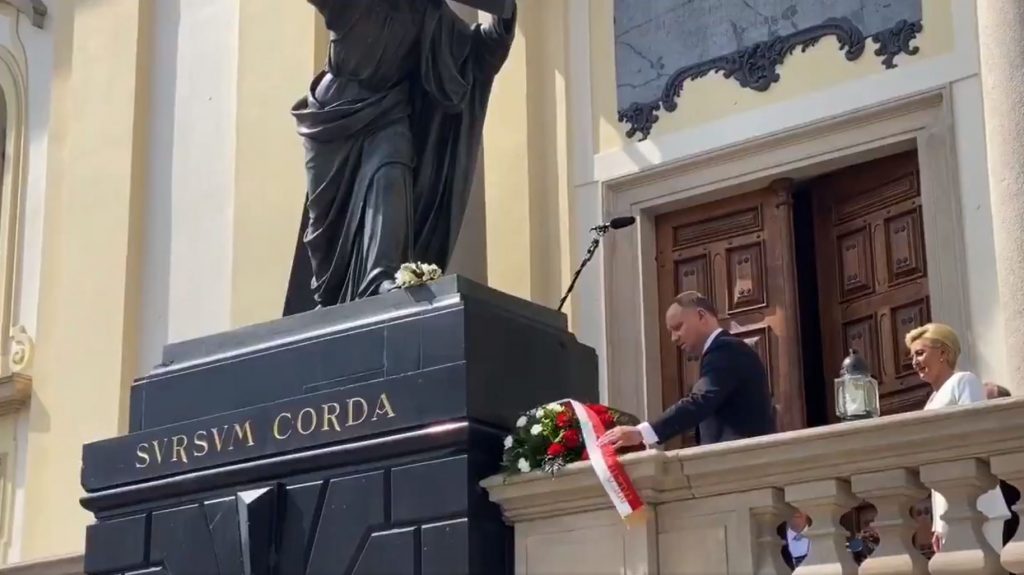 Prezydent z małżonką złożyli na cokole u stóp figury Chrystusa wiązankę białoczerwonych kwiatów. Parze prezydenckiej towarzyszył kapelan ks. Zbigniew Kras.